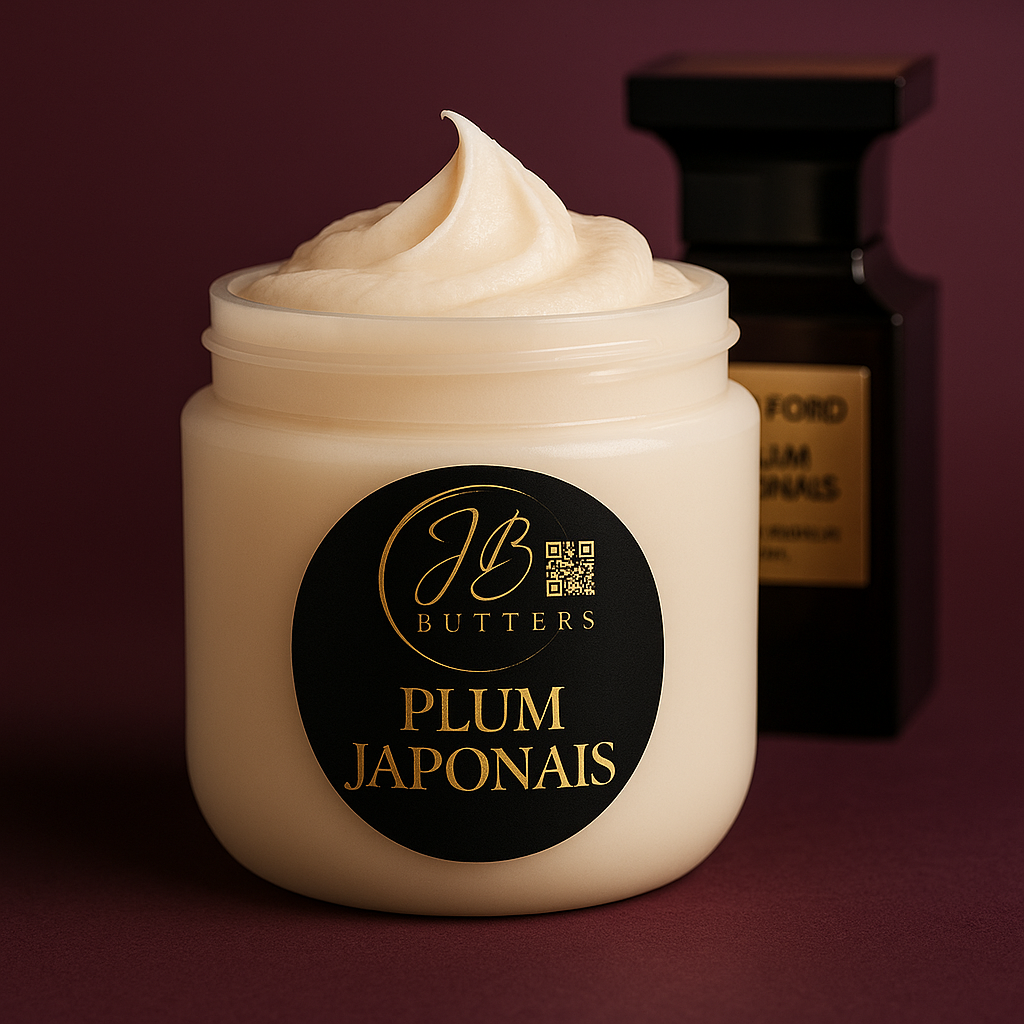 Indulge in this luxurious Shea Butter inspired by Tom Ford Plum Japonaise! Revitalize and nourish your skin with the moisturizing benefits of shea butter, while enjoying the alluring and exotic fragrance of Plum Japonaise. Treat yourself to a sensory experience with this decadent shea butter. This luxurious blend opens with the luscious depth of ripe plum and cinnamon, unfolding into an exotic blend of Japanese Plum blossom, camellia, and rare oud. Warm resinous notes of amber, benzoin and vanilla linger on the skin.